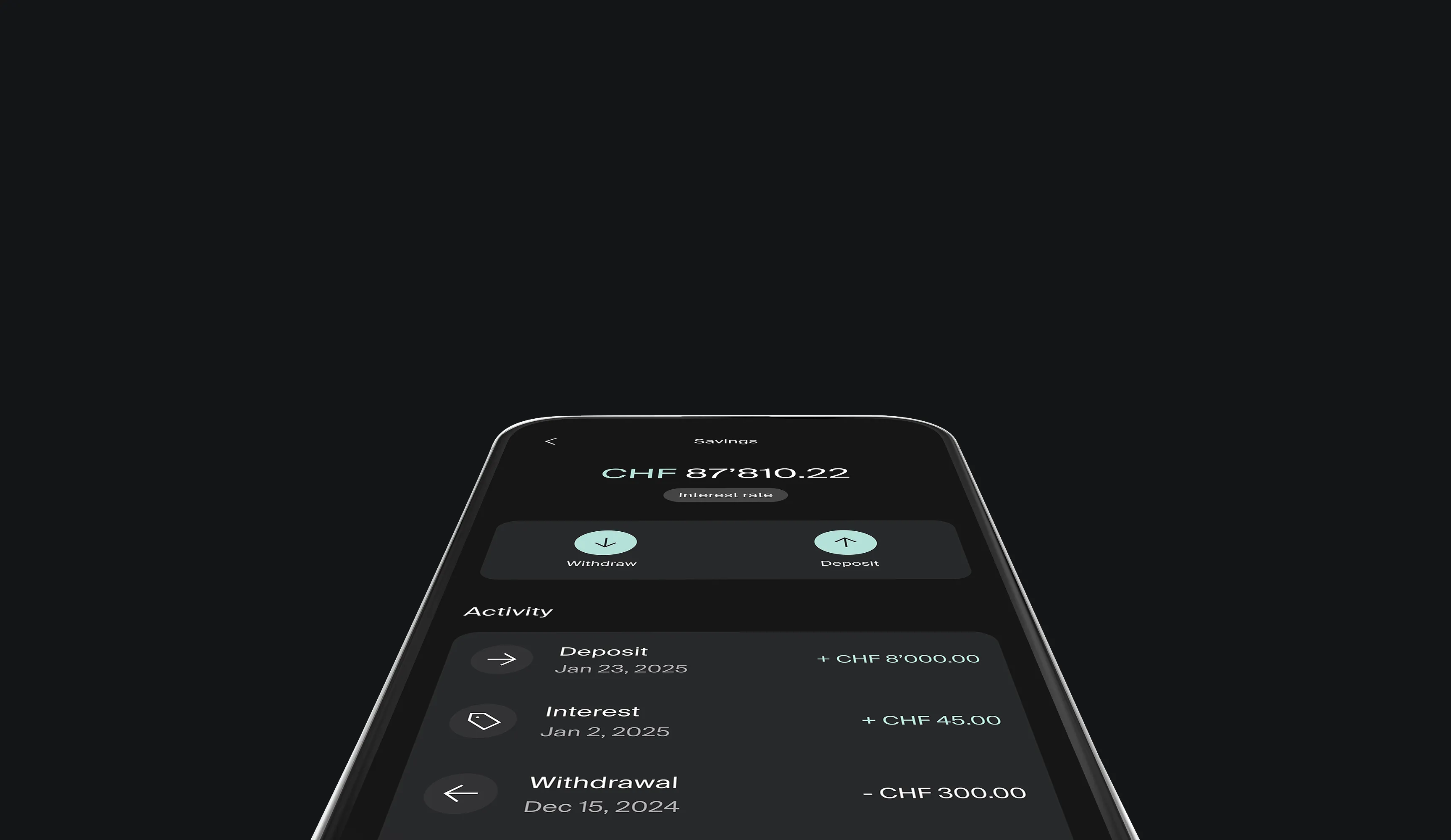Build your emergency fund, earn monthly interest on your CHF savings, and access your money anytime at no cost.