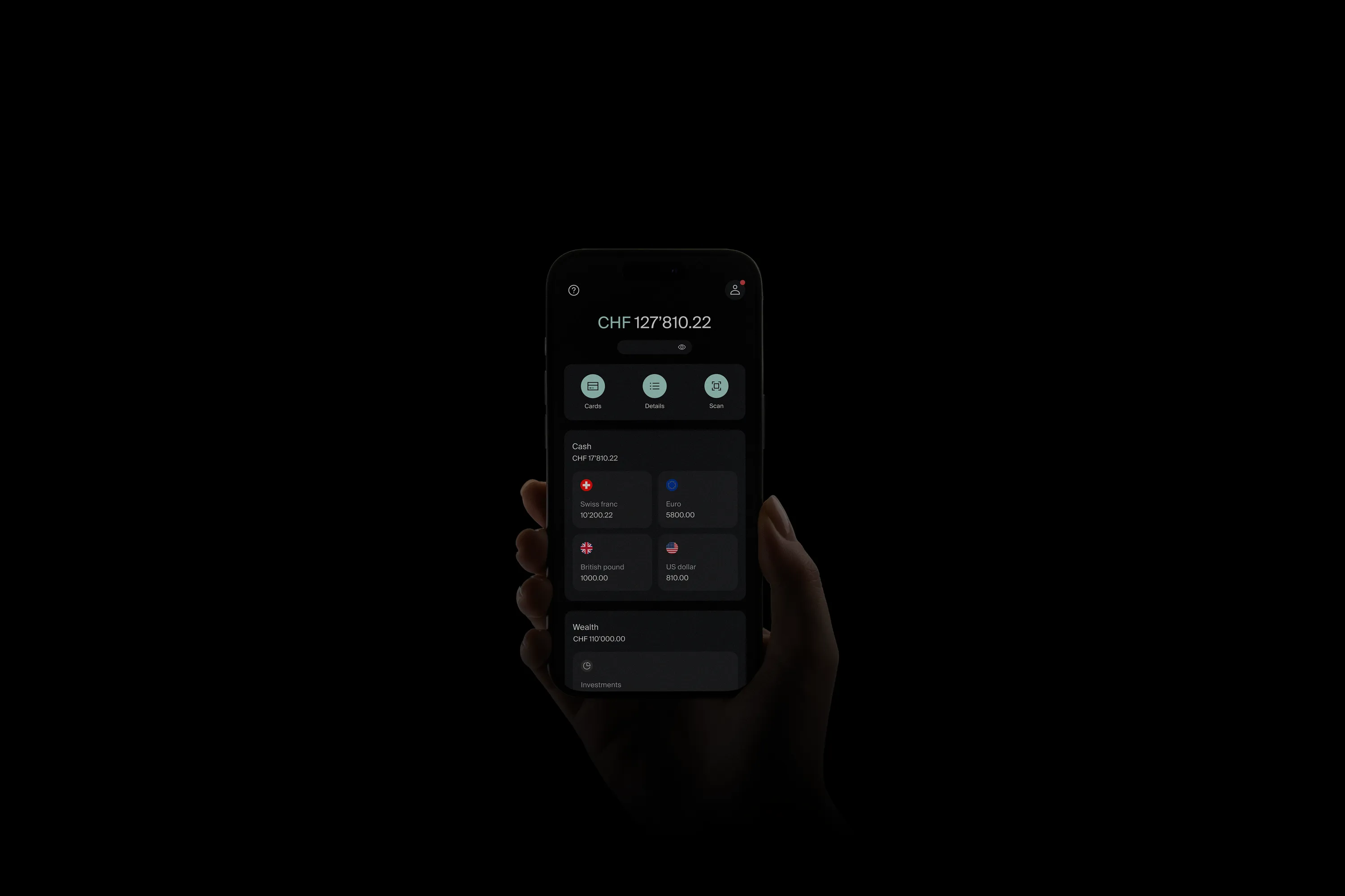 Store, spend, and convert your CHF, EUR, USD and GBP instantly without commissions.