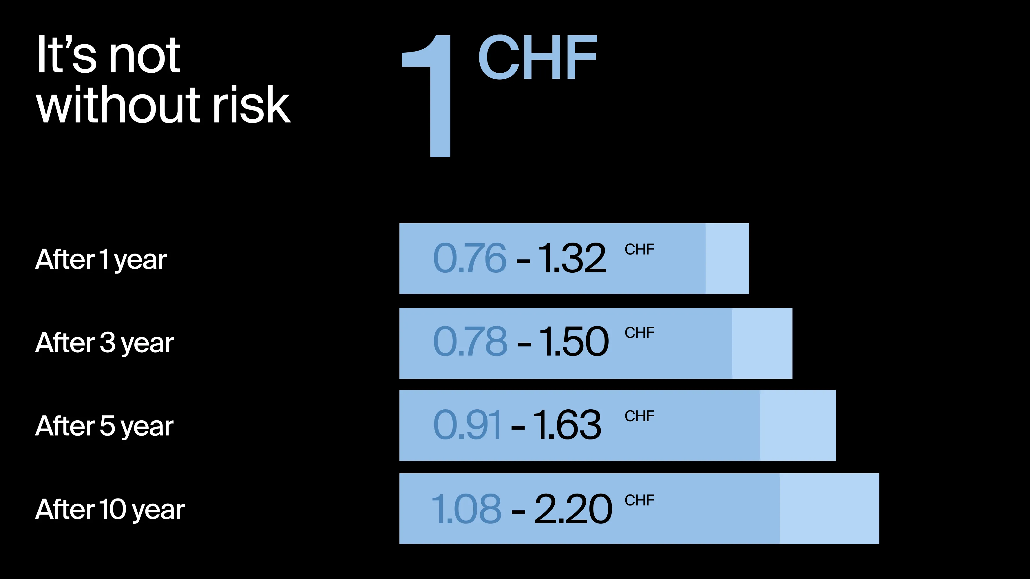 Instead of the average value of 1 CHF over time with a balanced portfolio**, we show what the best and worst outcomes could have been over different periods.