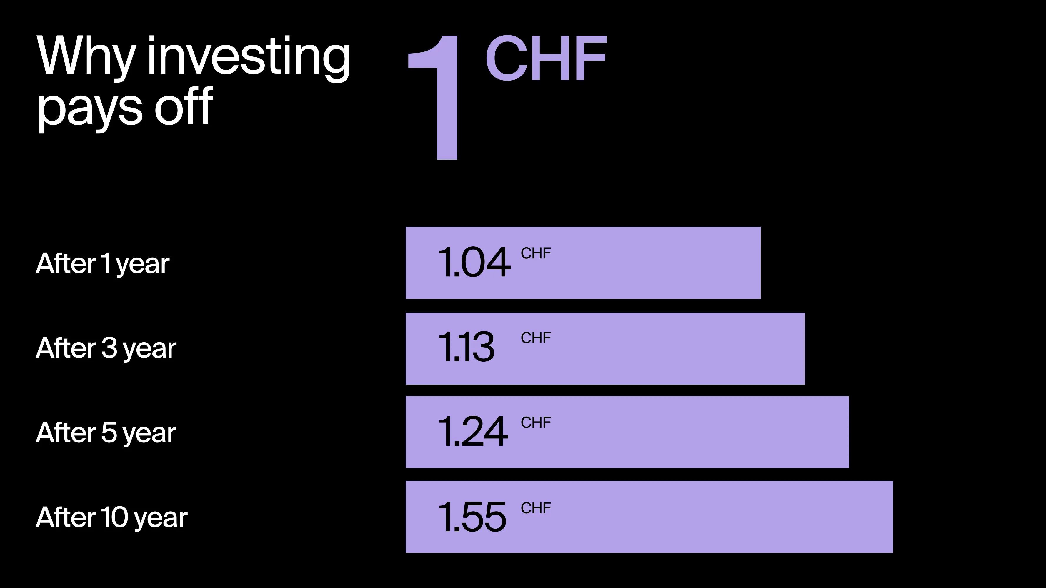 Conversely, a diversified investment can boost your capital. Discover how, on average, 1 CHF has historically flourished when invested in a balanced allocation** over different periods.