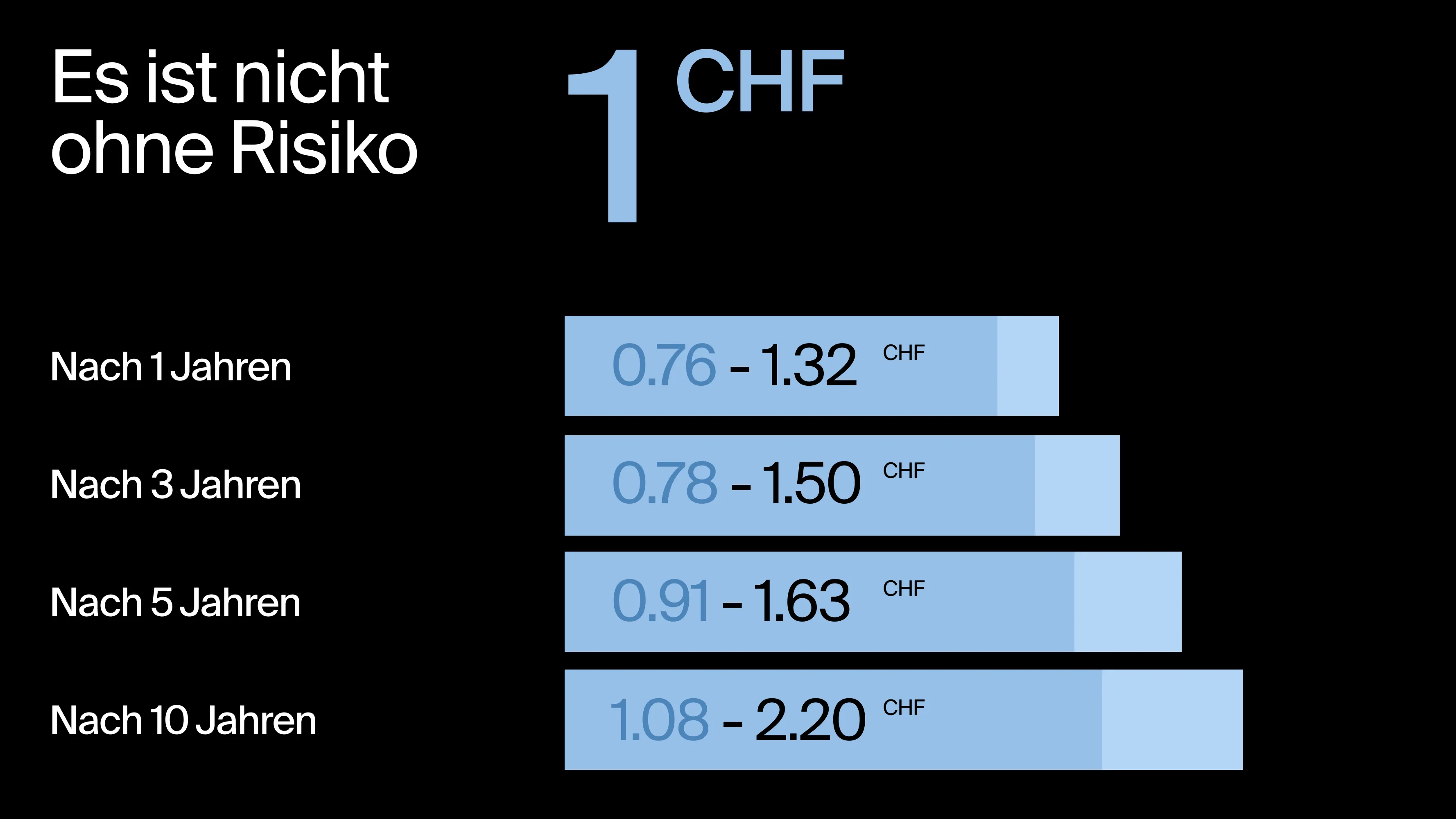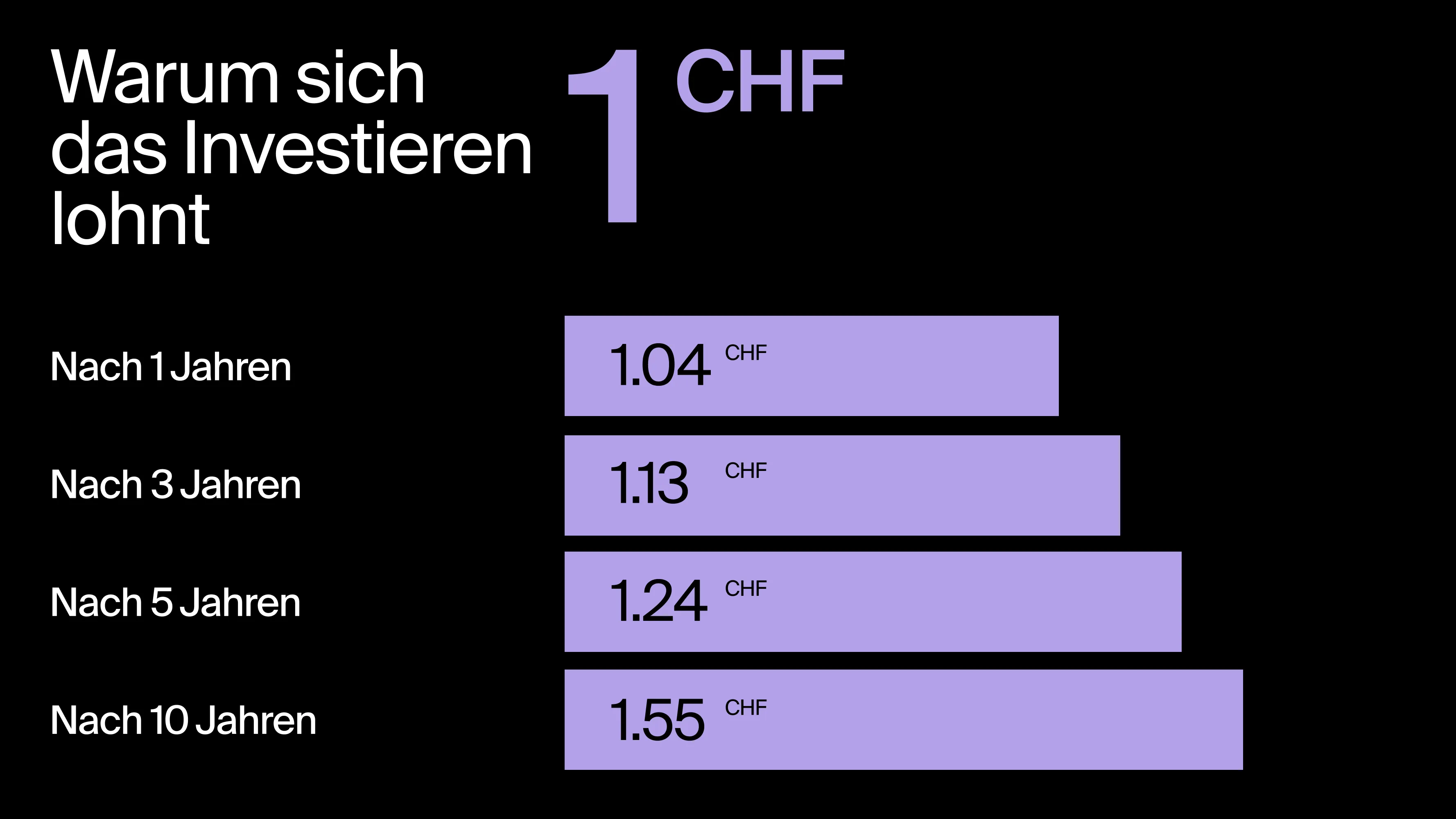 Eine diversifizierte Anlage kann Ihr Vermögen vermehren. Entdecken Sie, wie sich 1 CHF in einer ausgewogenen Vermögensallokation** über verschiedene Zeiträume im Durchschnitt entwickelt hat.