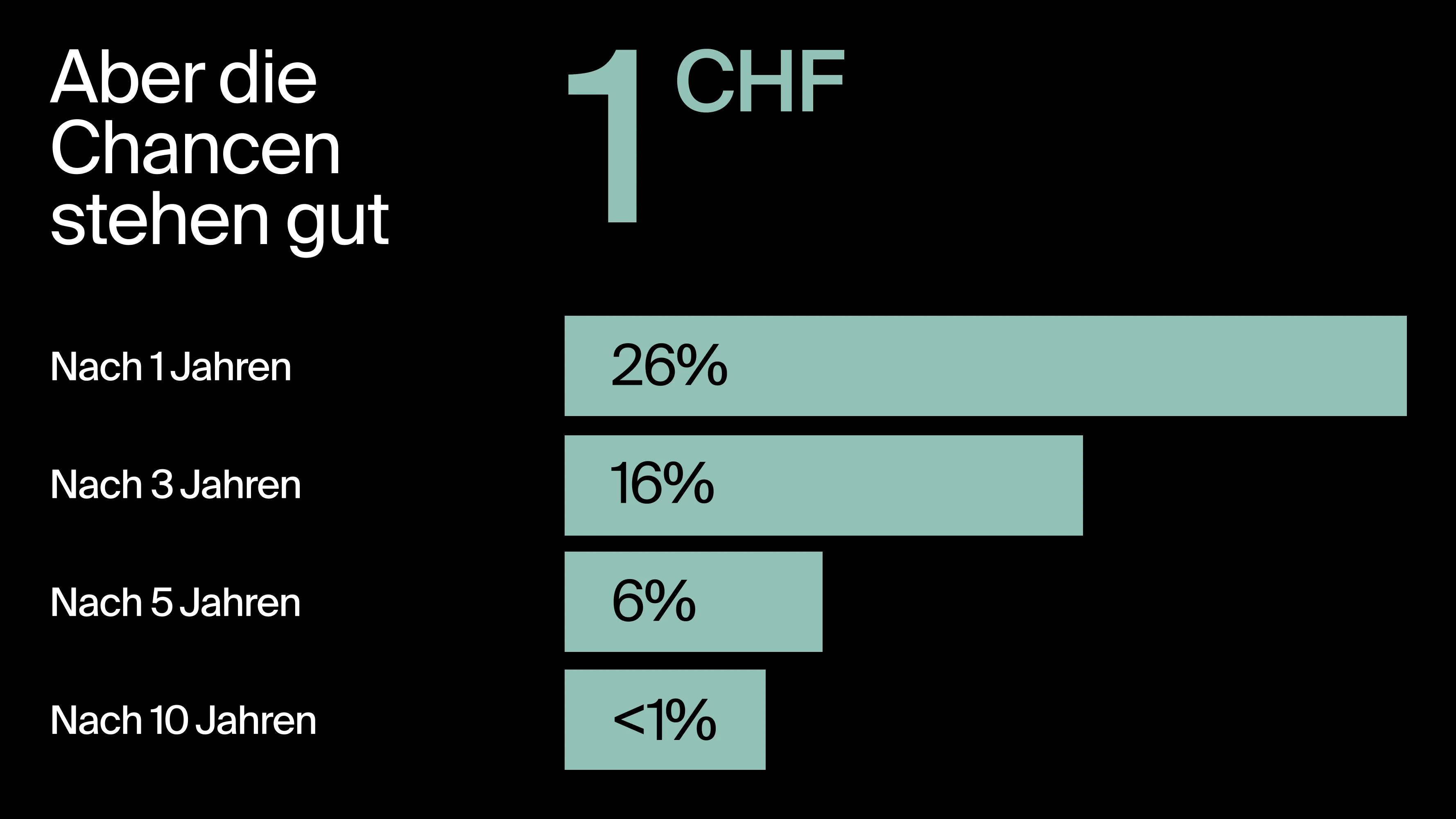 Wir zeigen Ihnen die Wahrscheinlichkeit, am Ende einer Anlageperiode weniger als den ursprünglich investierten Betrag zurückzuerhalten, wenn 1 CHF in eine ausgewogene Vermögensallokation** investiert wird.